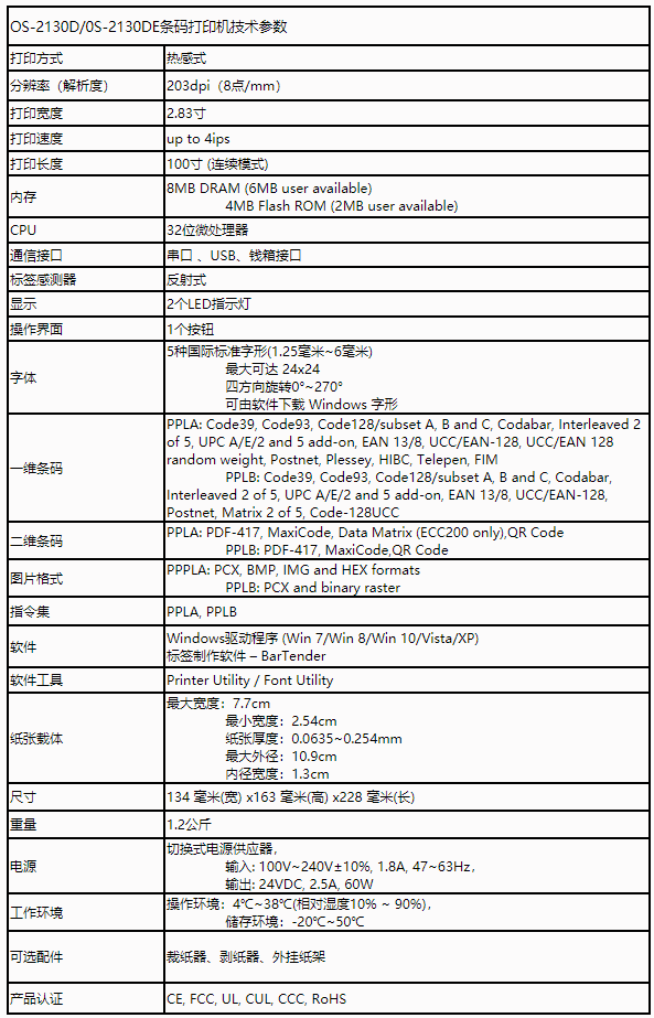 OS-2130D/OS-2130DE 為一款體積小巧的桌上型標(biāo)簽條碼打印機,提供熱感式標(biāo)簽打印,主要的傳輸接口為USB 2.0, 可連接筆記本計算機執(zhí)行打印,適合各種服務(wù)業(yè)使用,例如:收銀柜臺,稱重,郵件收發(fā),銀行,票務(wù),病患追蹤,店面零售等等。