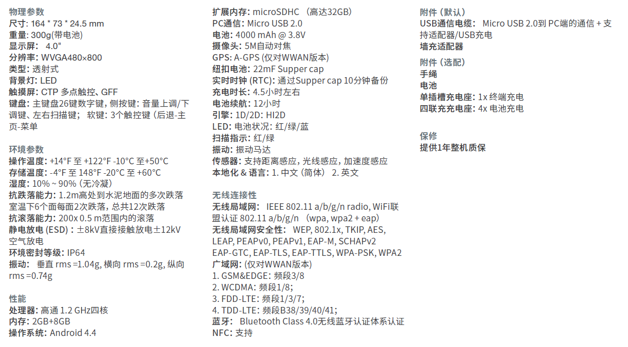 強大的續(xù)航能力,4000mAh 超大容量鋰離子智能電池,10000 次充電接口插拔壽命,更好的耐用性深度定制的軟件功能,為國內(nèi)客戶開發(fā)企業(yè)應(yīng)用鎖功能,方便企業(yè)管理設(shè)備使用