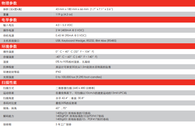 可全向讀取幾乎所有一維條碼和廣泛應(yīng)用的二維條碼,包括質(zhì)量不佳的條碼。